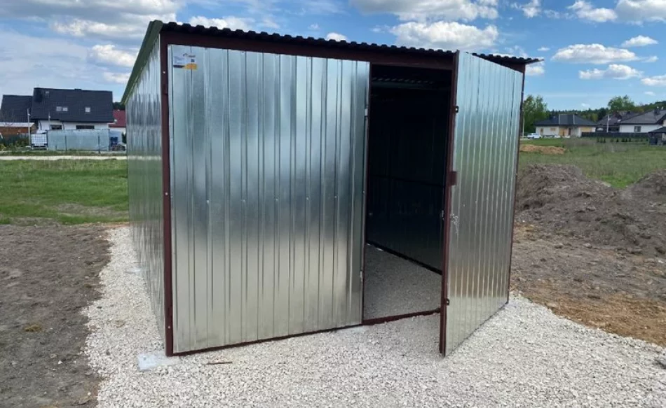Proponujemy garaż o wymiarach 3x5 m, z blachy ocynkowanej, na solidnej, wzmocnionej konstrukcji stalowej.