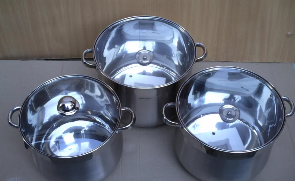 w zestawie są 3 garnki z pokrywkami , o pojemności :16L-19L-22,5l
