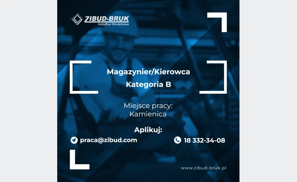 PRACA! Zatrudnię magazyniera, kierowcę kat. C na skład z kostką brukową. Miejsce pracy: Kamienica. Więcej informacji pod nr telefonu: 183323408 lub zainteresowane osoby prosimy o przesłanie CV na adres: [email protected]