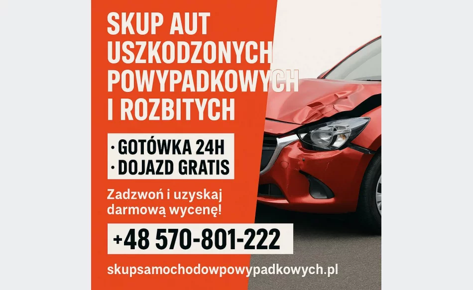 Skup aut uszkodzonych Kraków /Małopolskie, auto bez OC skup