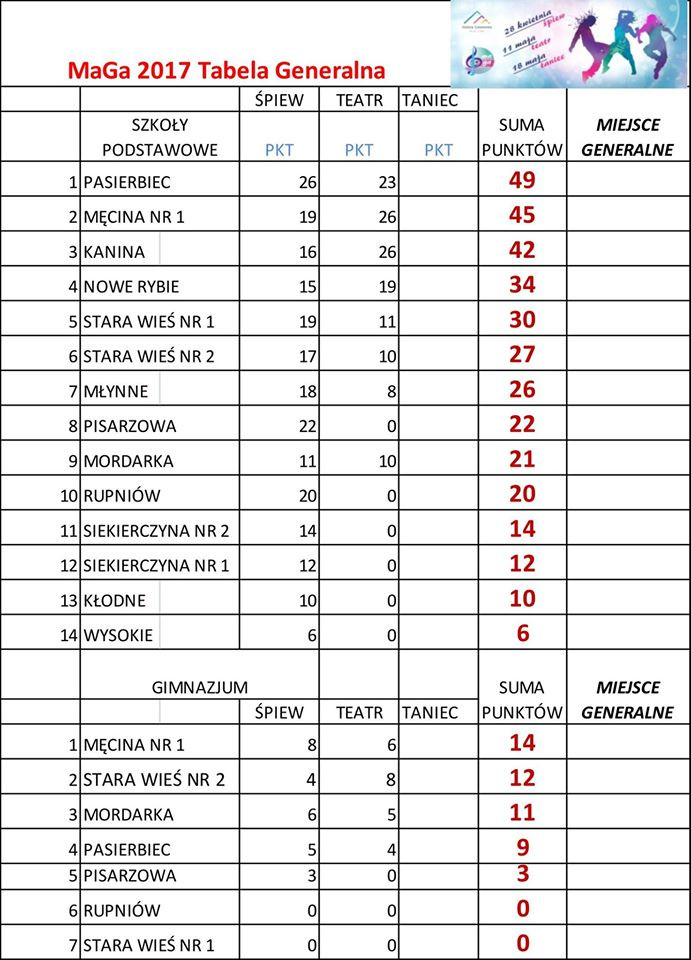 Po Konkursach Śpiewu i Scenek Teatralnych przyszedł czas na taniec i końcowe rozdanie punktów dla poszczególnych placówek. Tabela generalna po dwóch konkursach przedstawia się następująco: