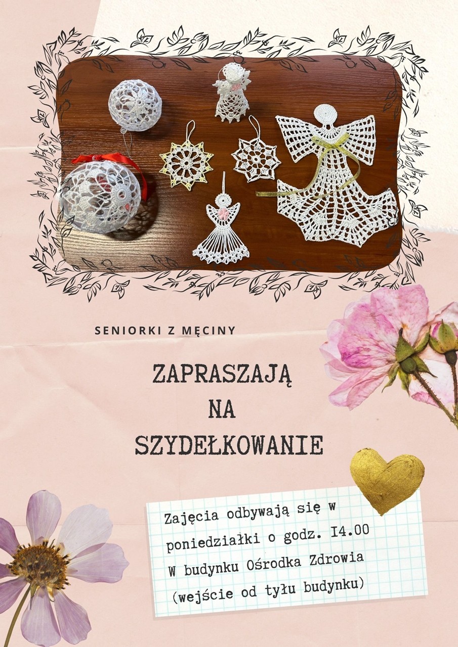 Każdego kto ma ochotę i trochę wolnego czasu SENIORKI Z MĘCINY zapraszają na zajęcia z szydełkowania, które odbywają się w poniedziałki o godzinie 14.00 w budynku Ośrodka Zdrowia (wejście od tyłu budynku).