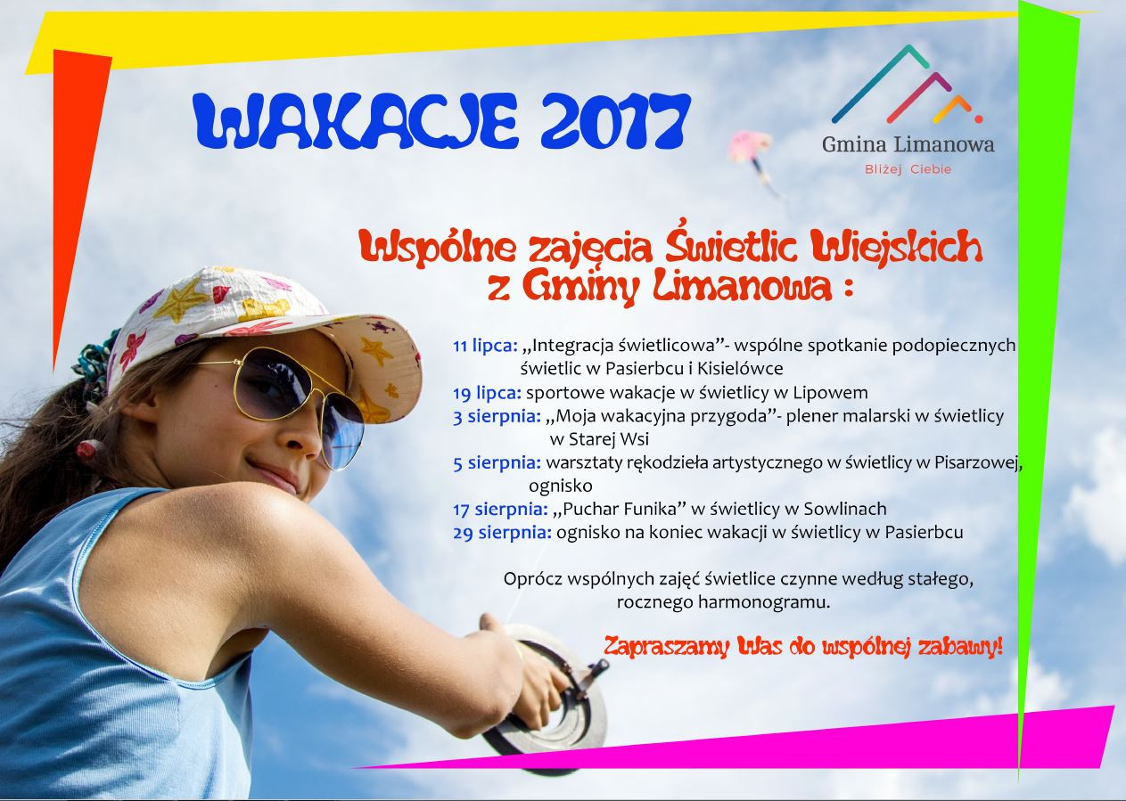 Jak co roku w okresie wakacji do wspólnej zabawy zapraszają świetlice wiejskie z Gminy Limanowa. Oprócz zajęć realizowanych w ramach rocznego harmonogramu pracy na czas wakacji zaplanowano wspólne przedsięwzięcia służące wzajemnej integracji podopiecznych placówek. Nie zabraknie międzyświetlicowej rywalizacji sportowej, będzie też twórczo i artystycznie, a niezapomniane wspomnienia pozostawią po sobie zapewne wspólne ogniska z pieczeniem kiełbasek, połączone z konkursami i nagrodami.