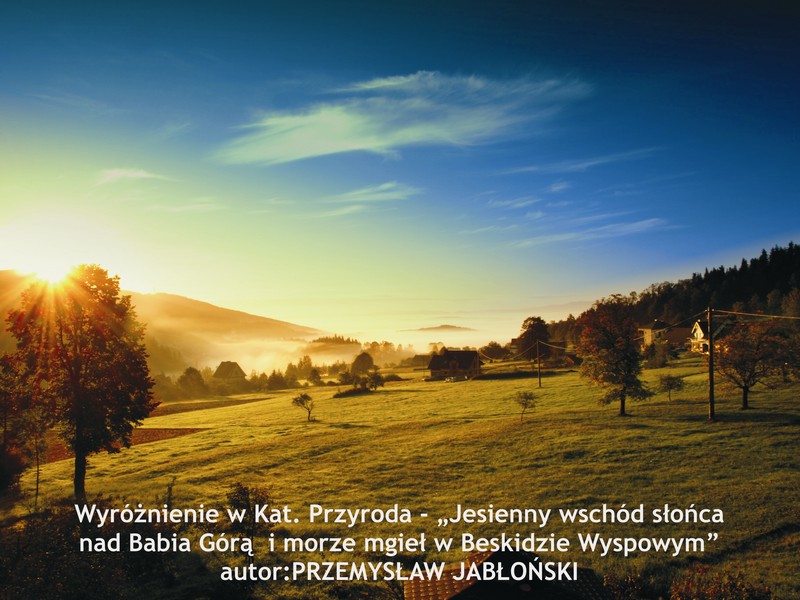 zdj. Jesienny wschód słońca nad Babią Górą i morze mgieł w Beskidzie Wyspowym – autorstwa Przemysława Jabłońskiego